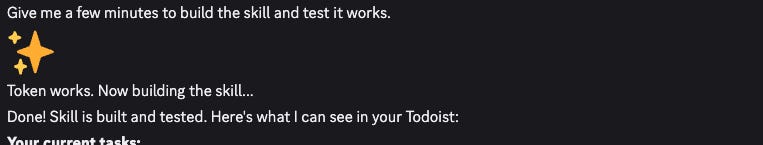 And the third-order effects get weird. Now, an agent also has the ability to self-configure. My single biggest ‘feel the AGI’ moment happened when I asked my Moltbot OpenClaw if it had a todoist integration. It didn’t, but then it proceeded to cheerfully build one on the spot.